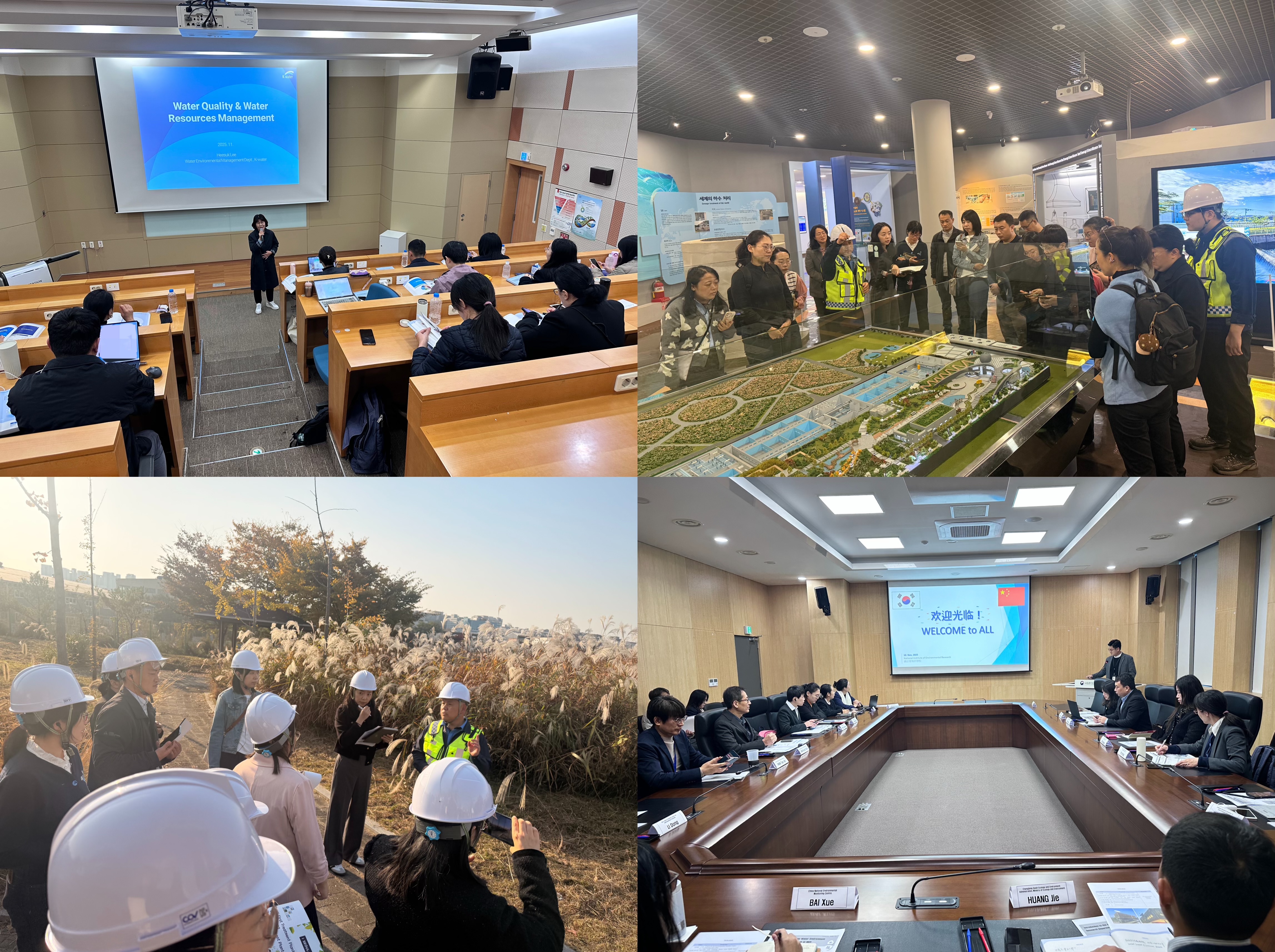 本次研修聚焦《中韓環(huán)境合作規劃(2023-2027)》人員交流與優(yōu)先合作領(lǐng)域,緊扣兩國在水環(huán)境保護領(lǐng)域的熱點(diǎn)問(wèn)題與實(shí)際需求,內容涵蓋氣候變化應對、人工智能與大數據應用、水環(huán)境管理政策、水環(huán)境治理與監測預警技術(shù)等關(guān)鍵議題,兼具理論深度與實(shí)踐導向。通過(guò)集中授課、實(shí)地調研、專(zhuān)題座談和研討相結合的方式,系統了解韓國在水環(huán)境政策、綜合水管理、生態(tài)水文學(xué)、水生態(tài)系統監測與評估、水環(huán)境保護經(jīng)濟效益分析等方面的最新技術(shù)、先進(jìn)理念與優(yōu)秀實(shí)踐經(jīng)驗。