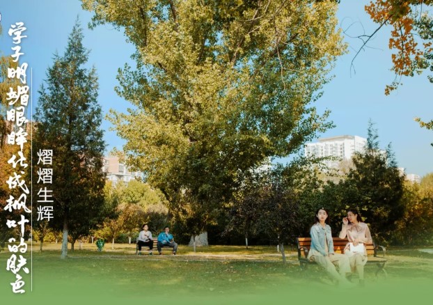 學(xué)子明媚的眼眸化成楓葉的映色 熠熠生輝