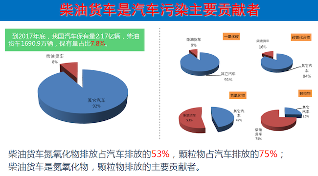 丁主任首先介紹了柴油貨車(chē)污染治理的任務(wù)由來(lái)和面臨的嚴峻形勢:近年來(lái)京津冀及周邊、汾渭平原、長(cháng)三角地區北部等重點(diǎn)區域大氣污染嚴重,隨著(zhù)汽車(chē)行業(yè)的發(fā)展和國內人均汽車(chē)保有量持續增長(cháng),移動(dòng)源排放造成的大氣污染進(jìn)一步顯現。柴油車(chē)雖然占比較低,卻是汽車(chē)污染主要貢獻者,而且非道路移動(dòng)機械和船舶排放問(wèn)題突出,這使得柴油貨車(chē)的污染成為“打贏(yíng)藍天保衛戰”重點(diǎn)工作,2018年舉行的全國生態(tài)環(huán)境保護大會(huì )對柴油貨車(chē)污染治理攻堅戰做出了全面部署,要求系統開(kāi)展“油路車(chē)”治理,同時(shí)兼顧非道路移動(dòng)機械和船舶污染防治。